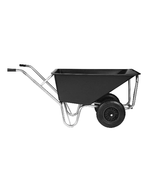 Þungavinnu hjólbörur úr plasti með plastbakka og galvaniseruðum ramma með 2 dekkjum með lekavörn. Mjög stöðugar og góðar í erfið verkefni.